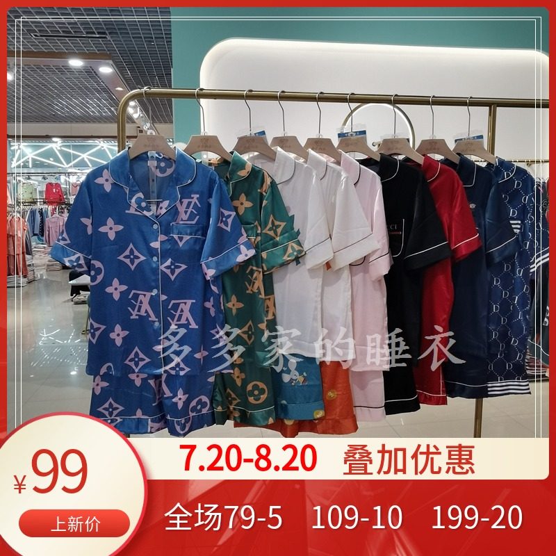 太太艾睡衣女夏季薄款冰丝短袖短裤套装韩版网红款可出门家居服热门设计联盟服务商