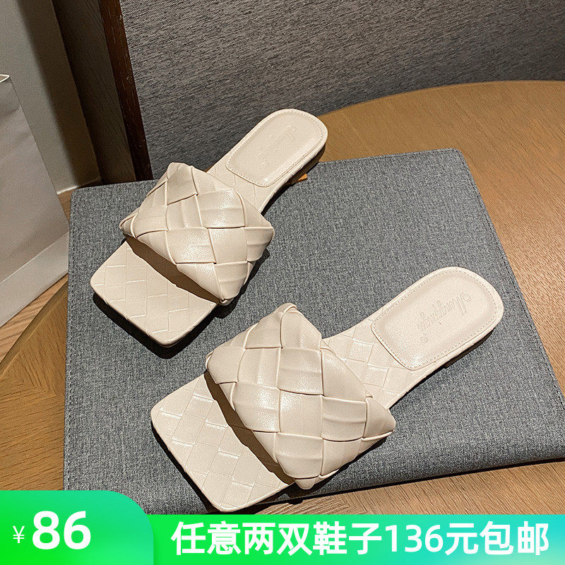 网红款编织拖鞋女夏季外穿新款时尚一字拖外出大码凉拖女41一43热门设计联盟服务商
