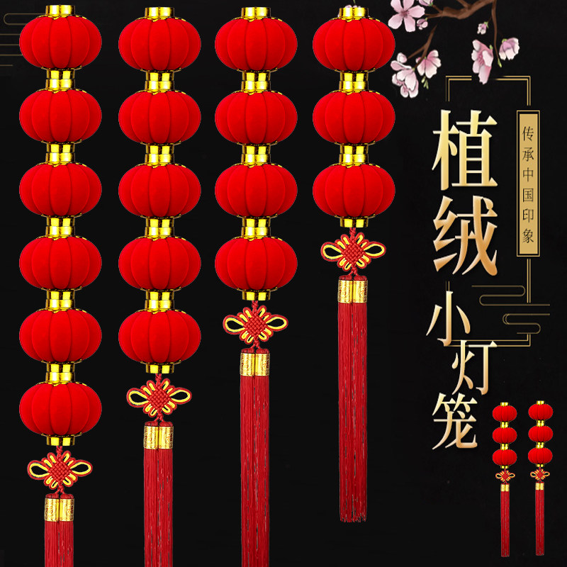植绒小灯笼串挂饰连串大红灯笼元旦春节新年装饰品结婚庆场景布置热门设计联盟服务商