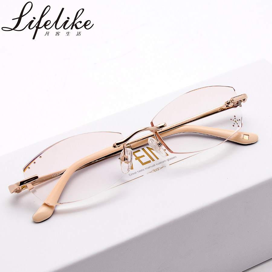 凡客生活 款无框眼镜韩国钻石切边眼镜镶钻女款近视框架F3153热门设计联盟服务商