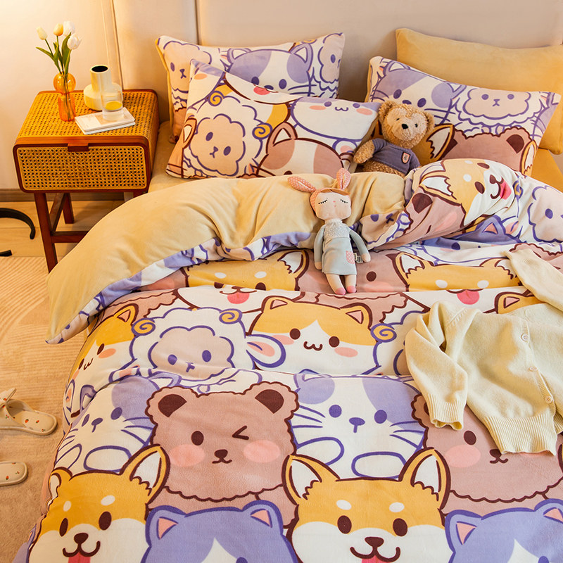 卡通牛奶绒被套单件冬天珊瑚绒被罩法兰绒单人双面加绒加厚毛绒面热门设计联盟服务商