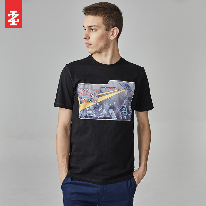 IZOD男装潮牌夏季新品2021韩版圆领竹节棉数码飞碟贴布短袖T恤热门设计联盟服务商