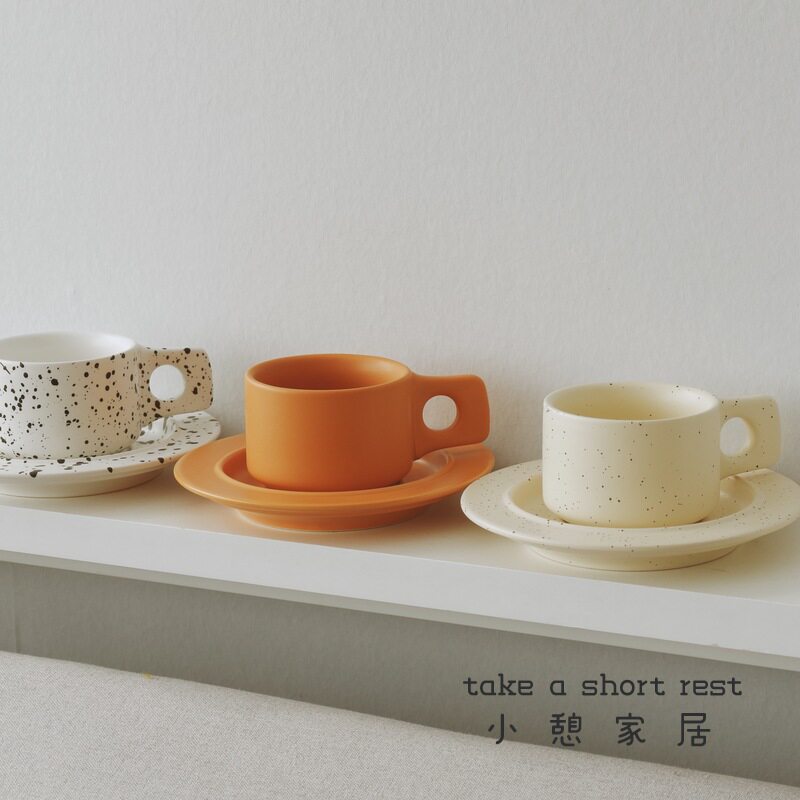 ins风奶油色咖啡杯垫韩式下午茶杯点心碟简约设计师款水杯橘色热门设计联盟服务商