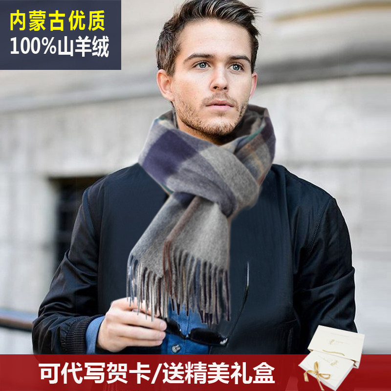 出口秋冬保暖厚高档100%山羊绒围巾经典英伦格子男士商务围脖送礼热门设计联盟服务商