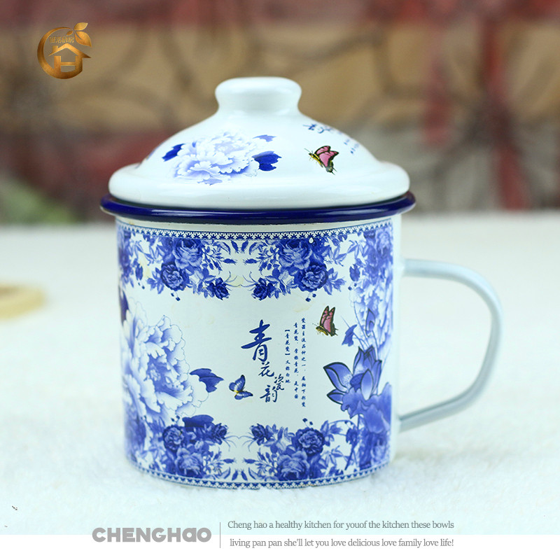 复古搪瓷杯怀旧水杯茶缸茶杯办公杯礼品带盖青花瓷老式大容量热门设计联盟服务商