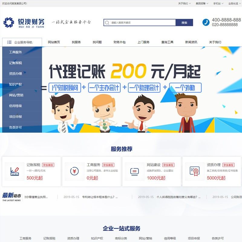 财务注册公司工商服务类企业网站织梦模板管理设计素材源文件资料热门设计联盟服务商