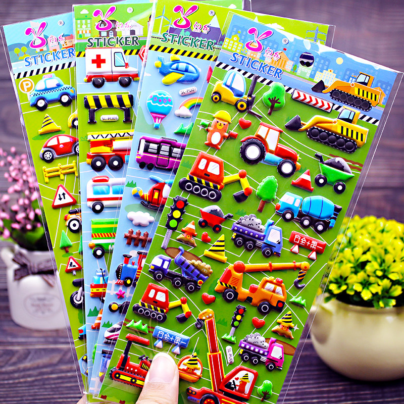 闪乐交通工具立体泡泡贴纸汽车挖掘机飞机卡通泡棉贴纸画儿童奖励热门设计联盟服务商