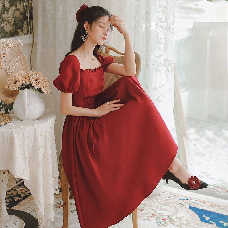官网红袖公主2021新款夏季法式复古连衣裙女设计感小众礼服裙子。热门设计联盟服务商