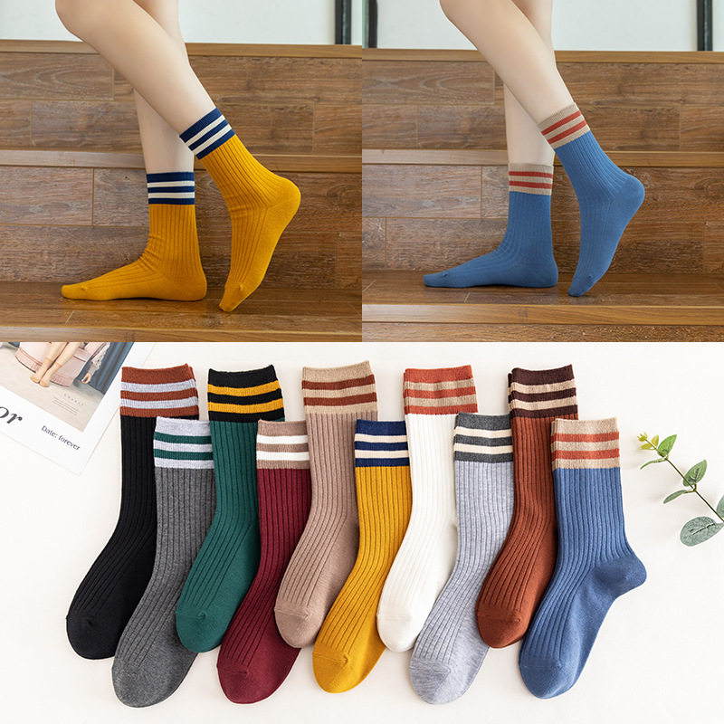 厂家直销秋冬款女士棉堆堆袜 二杠复古长筒袜INS学院风袜子批发热门设计联盟服务商