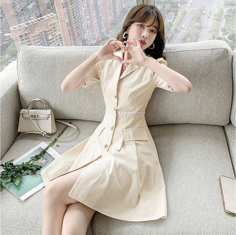 夏季女领设计感坚果服饰连衣裙西装V新款网2021短袖法式裙子热门设计联盟服务商