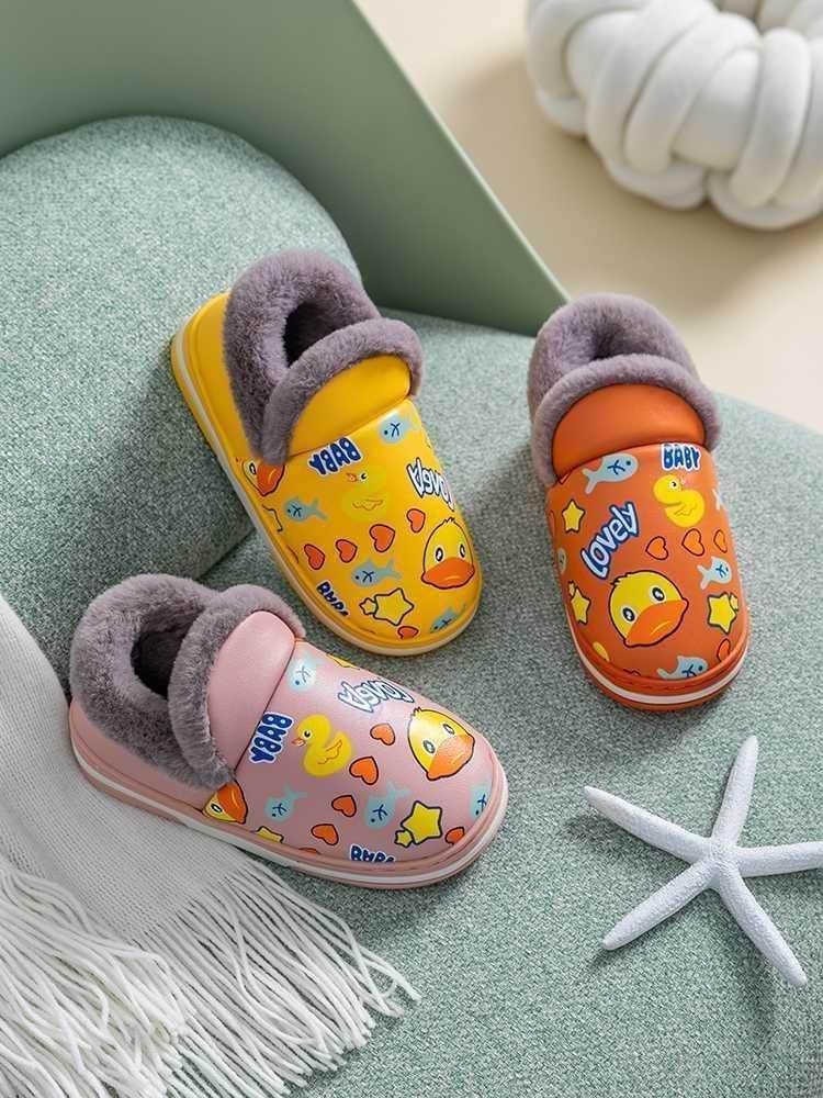 儿童棉拖鞋包跟秋冬季男童女童室内家居防滑皮面保暖宝宝卡通棉鞋热门设计联盟服务商