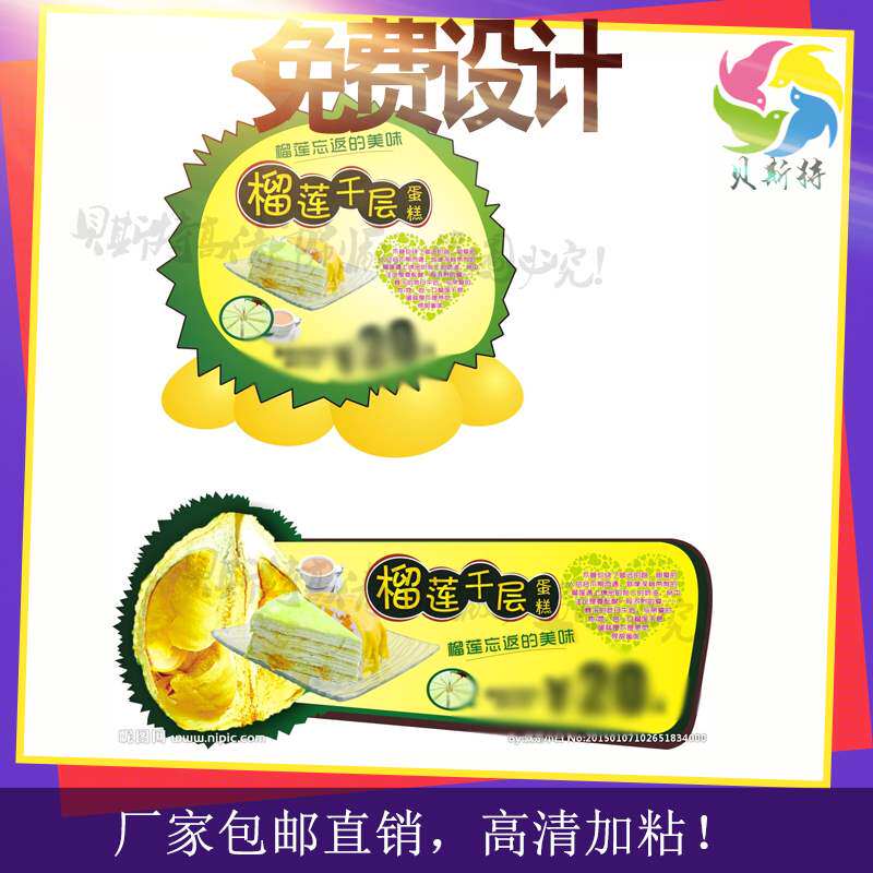 甜点pvc铜版纸白色不干胶榴莲千层包装面包标签贴纸蛋糕定制设计热门设计联盟服务商