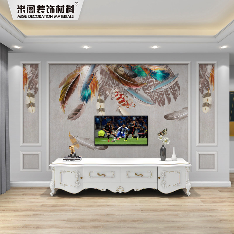 8D立体现代简约电视背景墙壁纸客厅卧室墙纸影视墙羽毛墙布壁画热门设计联盟服务商