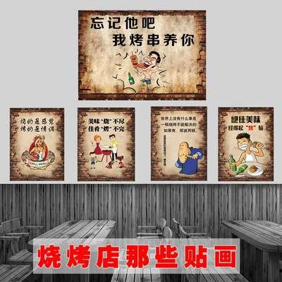 搞笑幽默考吧饭店大排档烧烤店装修简单复古墙面宝箱烧烤装饰贴。热门设计联盟服务商
