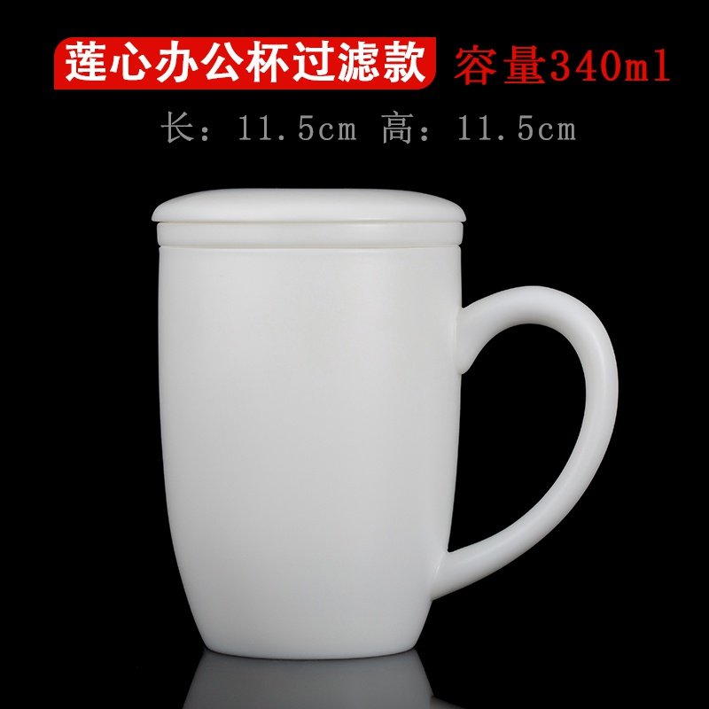 新品德化羊脂玉带过滤办公杯白瓷水杯带手柄商务家用陶瓷茶杯定制热门设计联盟服务商