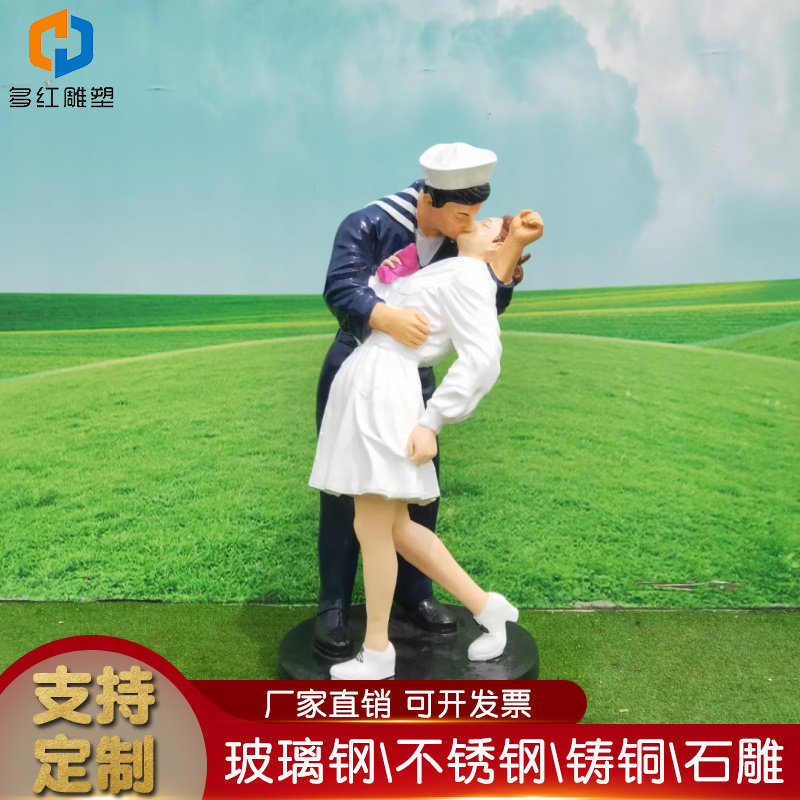 胜利之吻主题景观爱情公园婚纱摄影玻璃钢人物外塑小品户雕摆件热门设计联盟服务商