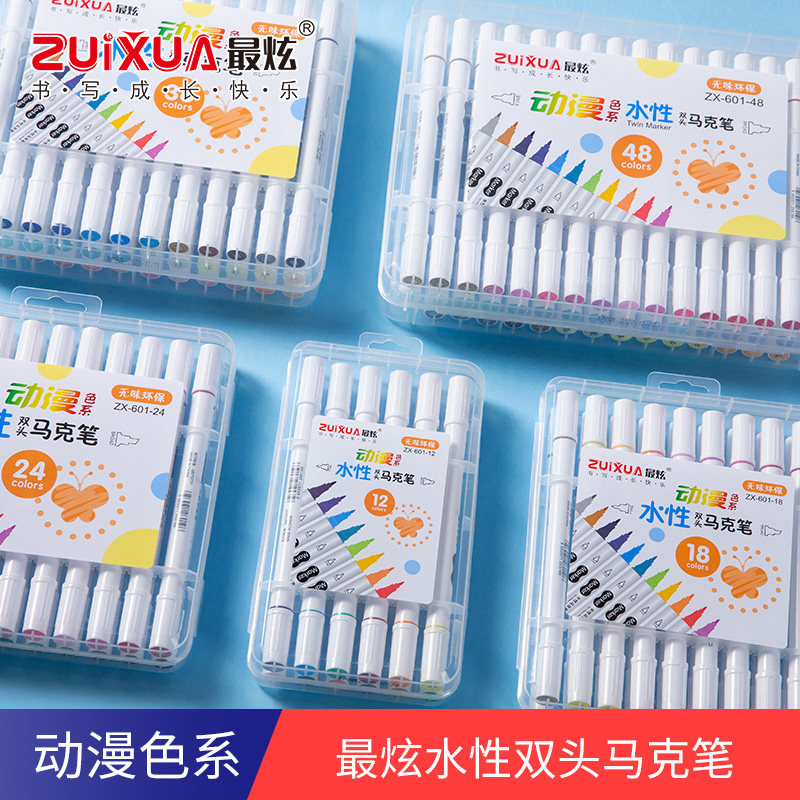 最炫水性马克笔套装 学生可水洗马克笔美术生专用设计绘画室内双头马克笔水溶性彩笔马克笔 全套画笔官方正版热门设计联盟服务商