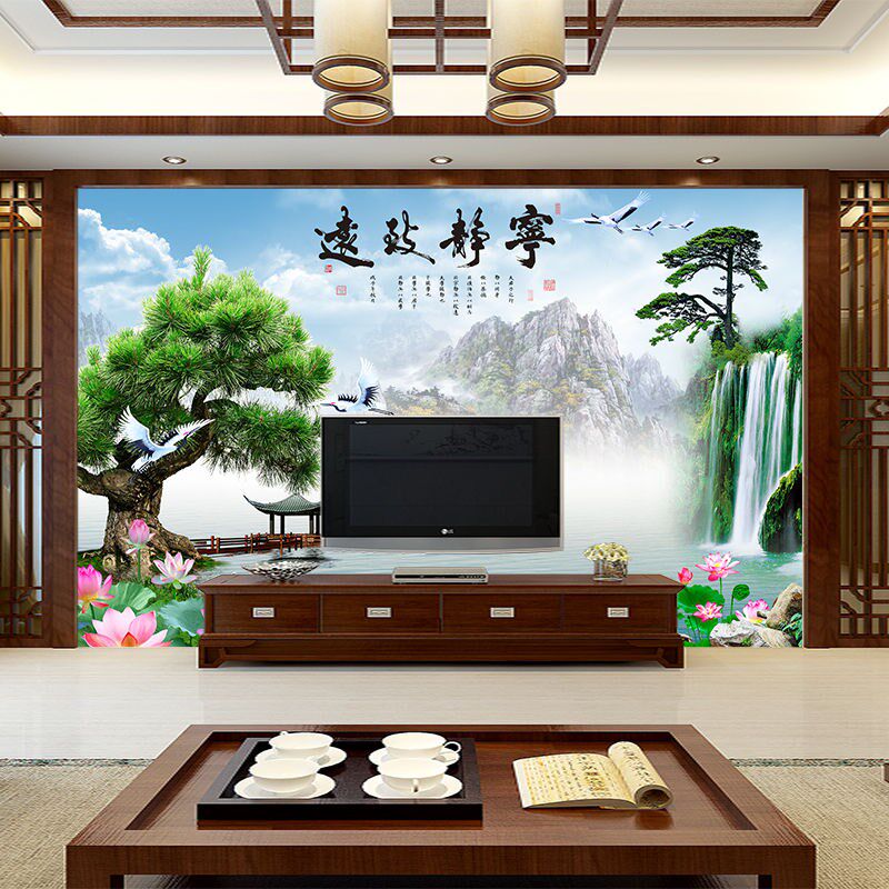 客厅5d大气流水壁画壁纸影视背景墙墙电视8d山水画风景中式生财布热门设计联盟服务商