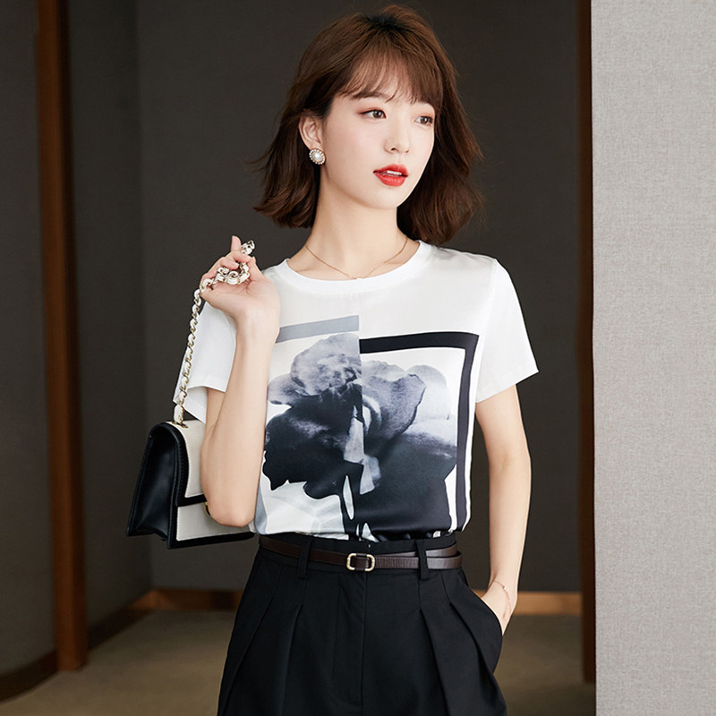 丽云服饰轻奢感水墨印花T恤女短袖2021夏季新款小众设计感气质上热门设计联盟服务商