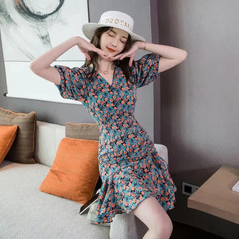 收腰雪纺新款气质女装202设计感小众薄款碎花连衣裙子小个子夏季热门设计联盟服务商