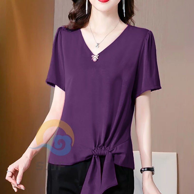 短袖女夏季2021新款高端雪纺上衣洋气减龄下摆打结t恤别致设计感热门设计联盟服务商