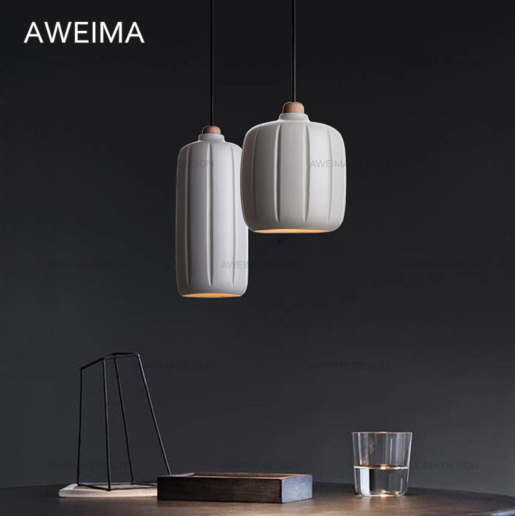 丹麦设计师北欧现代极简约陶瓷2色单头吊灯/床头餐厅吧台实木吊灯热门设计联盟服务商