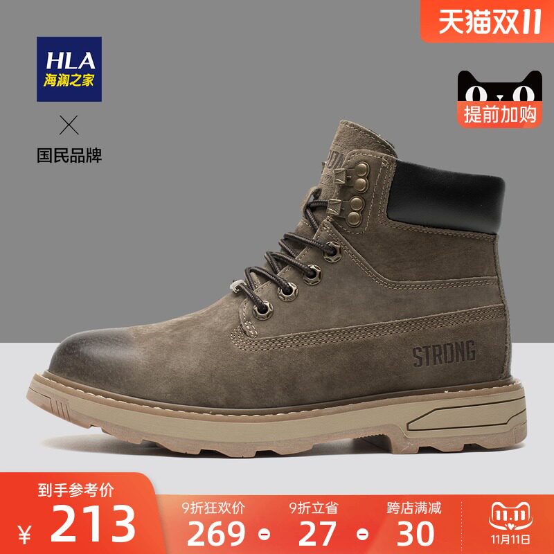 HLA海澜之家男鞋冬季加绒男靴时尚男士靴工装靴复古男雪地靴热门设计联盟服务商