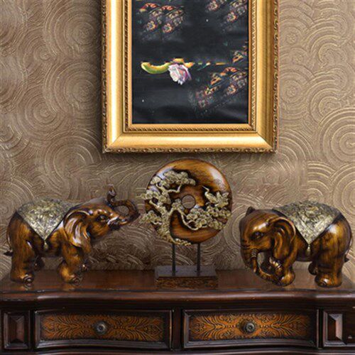 欧式招财象摆件一对屏风三件套美式中式家居客厅会所玄关大装饰品热门设计联盟服务商