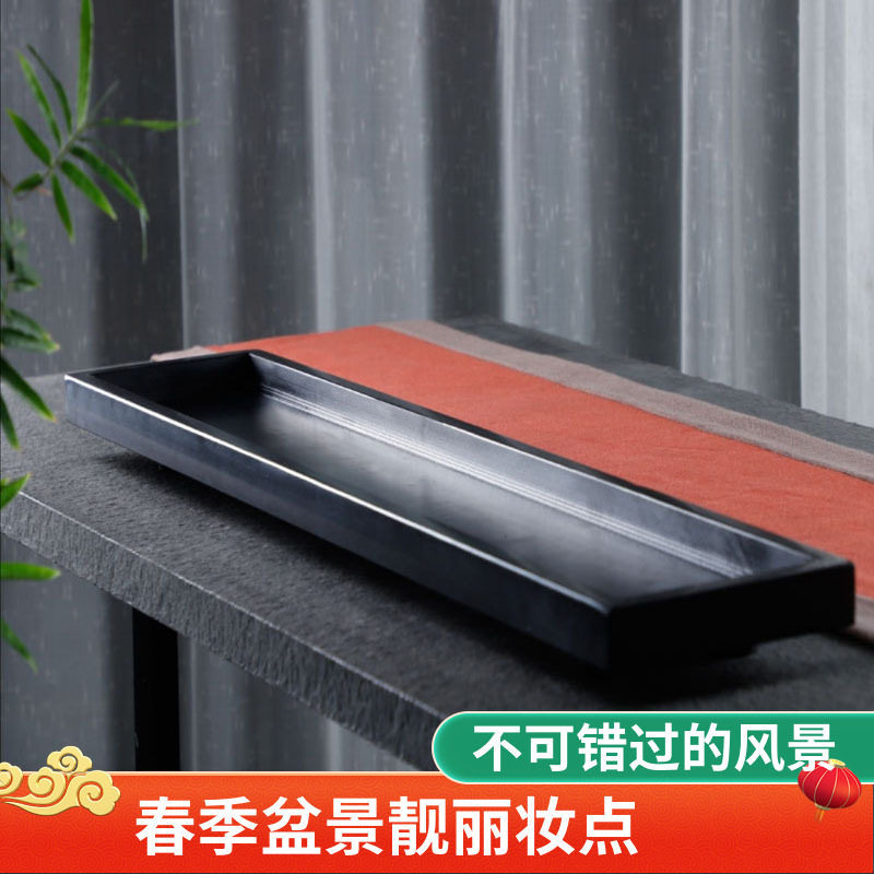 。乌金石假山盆景盆桌面造景微景观山水浅盆中式禅意吸水石托盘。热门设计联盟服务商