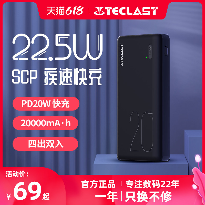 TECLAST 充电宝20000毫安大容量超级快充 大容量22.5W/18WPD快充充电宝移动电源 苹果安卓华为小米手机通用热门设计联盟服务商