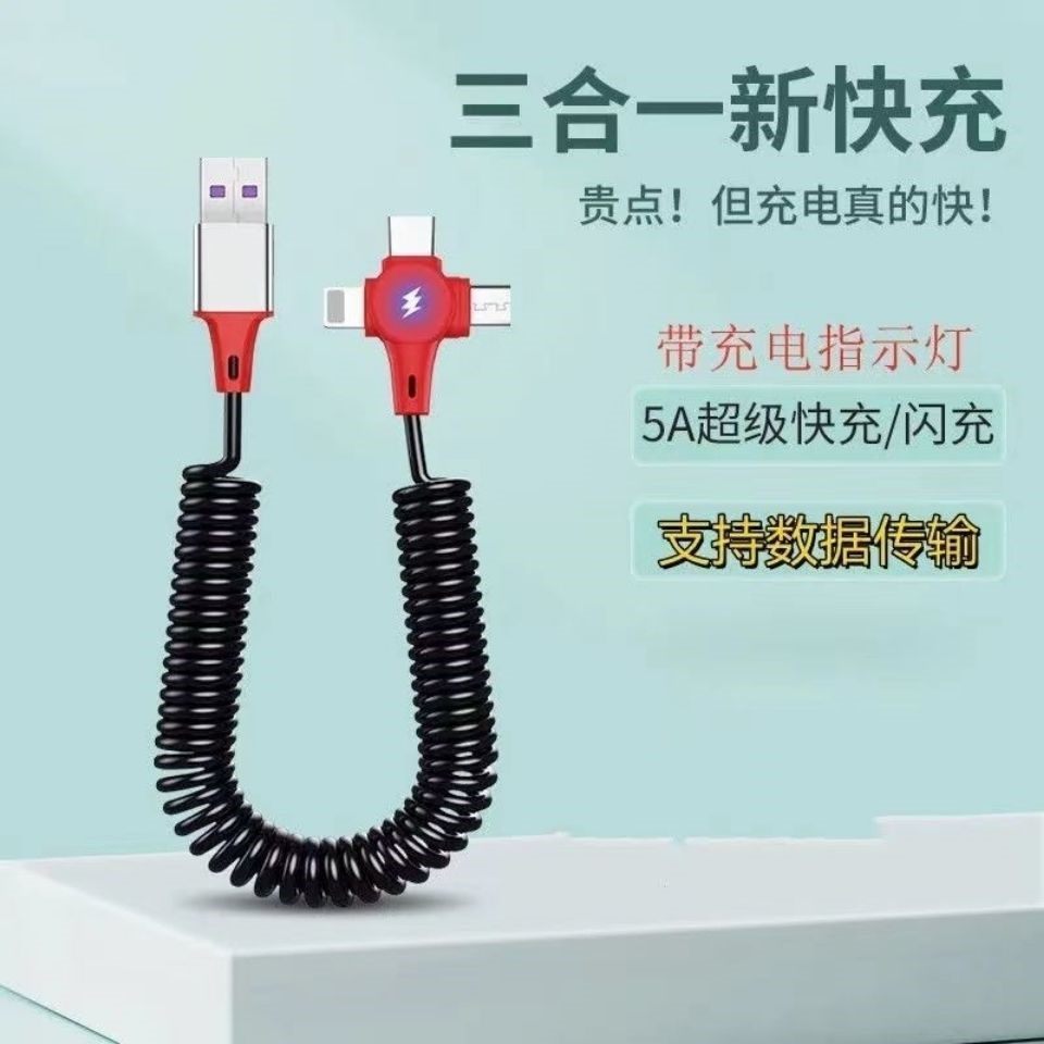 一拖三5A簧镀金超级快充数据线适用于苹果华为安卓闪充充电器线热门设计联盟服务商