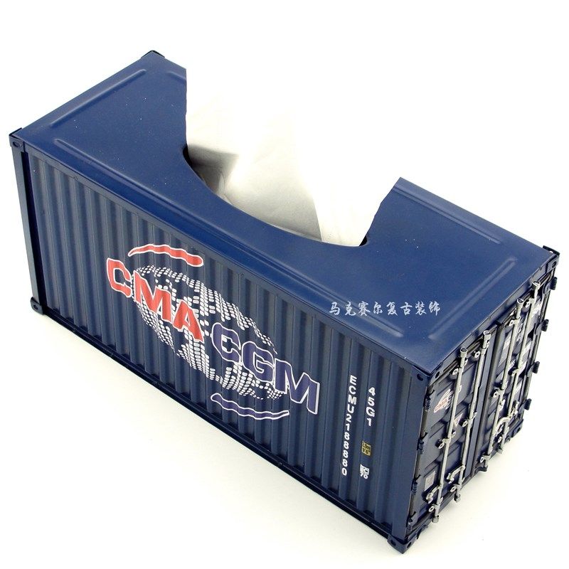 集装箱纸巾盒美式创意复古抽纸盒手工铁艺L货柜造型纸抽盒装饰摆热门设计联盟服务商