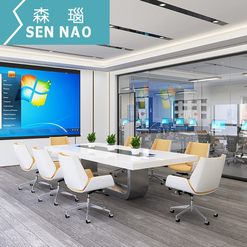 会议桌办公桌简约现代长条桌长方形洽谈桌椅组合休闲烤漆钢琴长桌热门设计联盟服务商