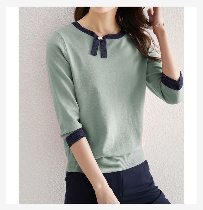 钉显针织珠新款上衣春夏衫色打底法式感套头瘦袖气质衫撞设计七分热门设计联盟服务商