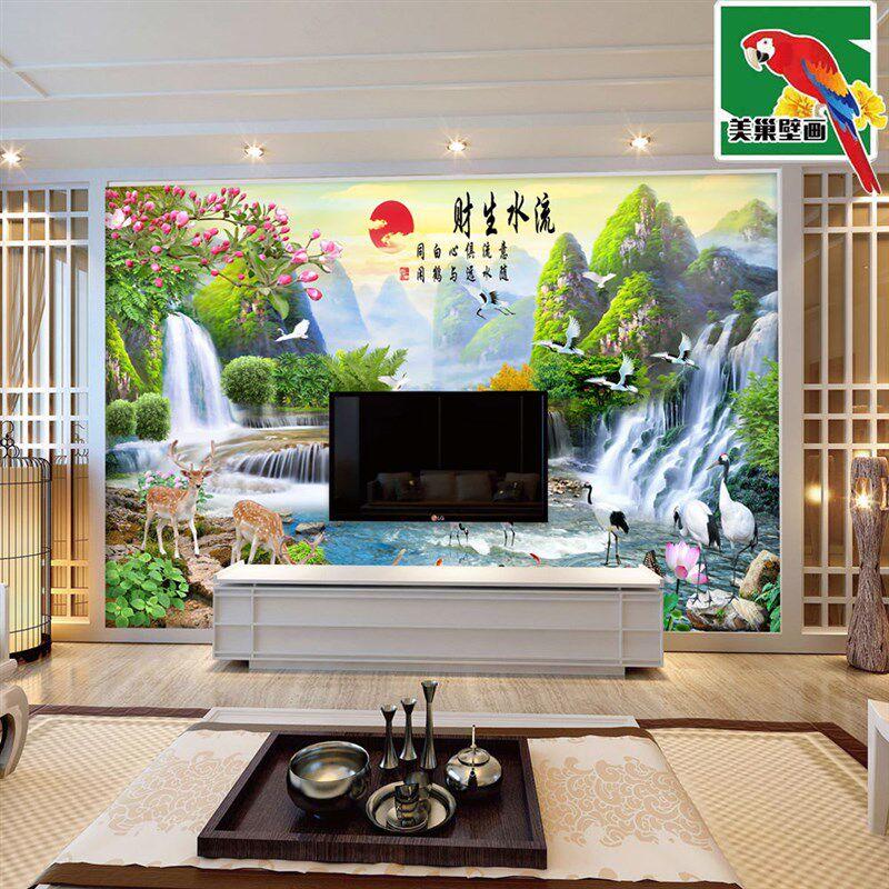 新D新中式电视背景墙壁画立体墙纸山水简约现代客厅沙Z发影视布定热门设计联盟服务商