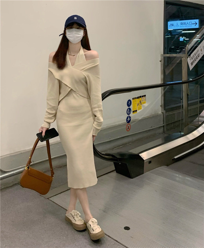 春装韩版2022新款收腰显瘦时尚设计感针织挂脖背心连衣裙女装CHIC热门设计联盟服务商