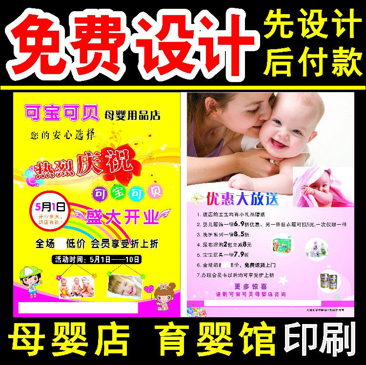 母婴店铺婴幼儿用品奶粉服装开业活动宣传单海报印刷定制免费设计热门设计联盟服务商