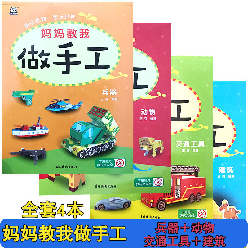 妈妈教我做手工 全套4本卡迪少儿亲子互动快乐共享兵器动物建筑交通工具 不用剪刀好玩又安全动手动脑畅销童书益智手工热门设计联盟服务商