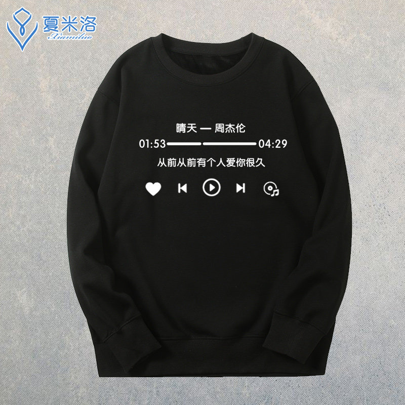 周杰伦歌词圆领卫衣播放器同款衣服男女宽松上衣可改歌词热门设计联盟服务商