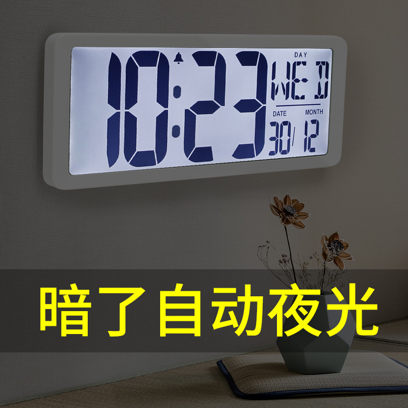 简约现代大屏数字挂钟夜光客厅静音电子时钟家用数码万年历挂墙壁热门设计联盟服务商
