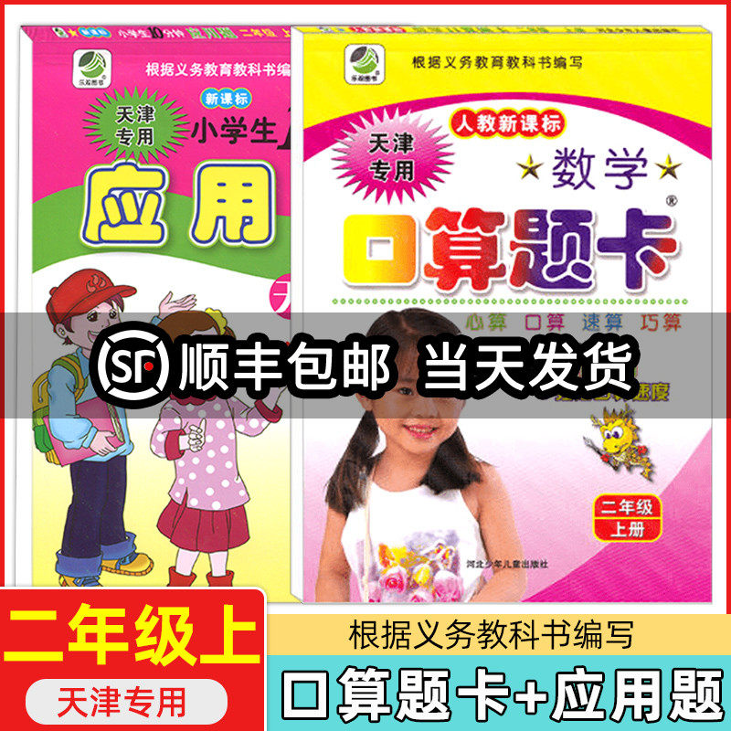天津专用版数学口算题卡+小学生10分钟应用题全2本二年级上册口算题卡+应用题天天练人教新课标根据义务教育教科书热门设计联盟服务商