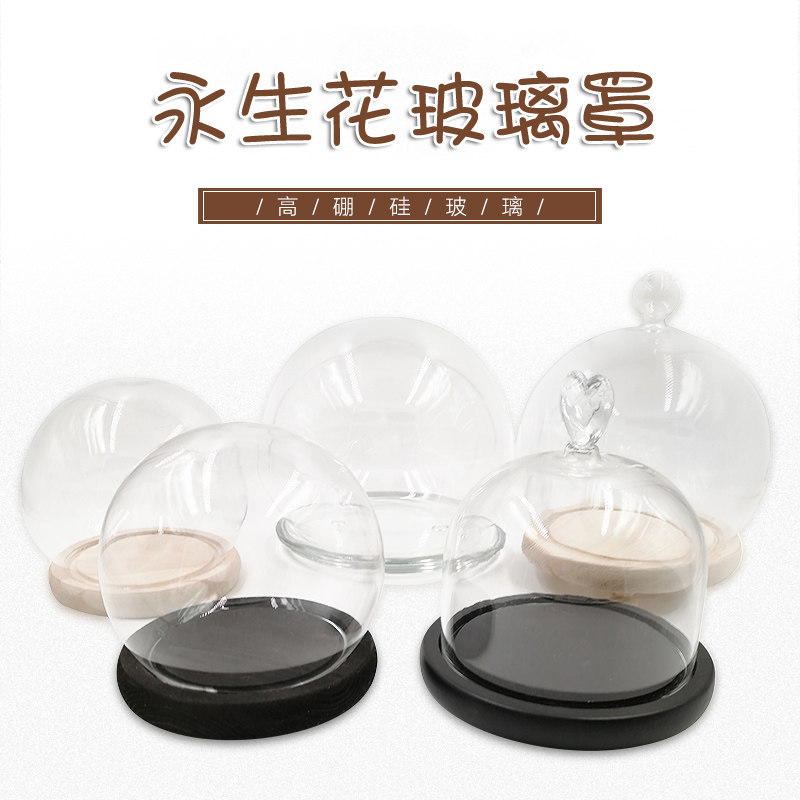 永生花diy玻璃罩礼盒微景观透明玻璃防尘罩花房花瓶保鲜花材料包热门设计联盟服务商