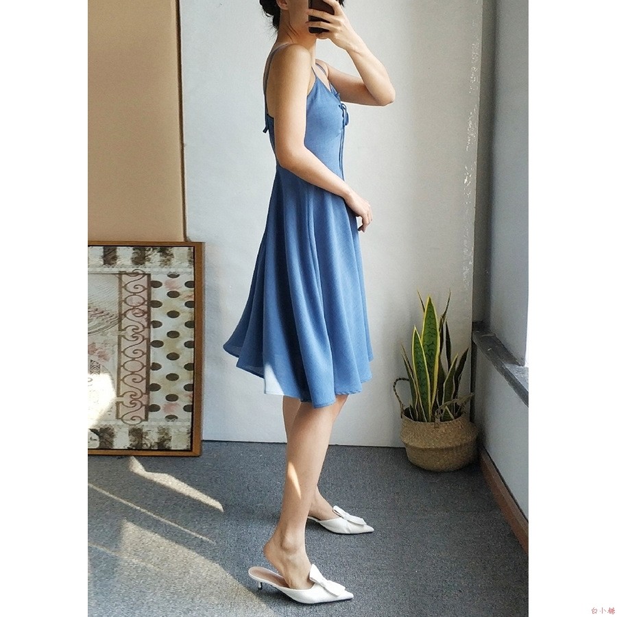 20新款 春夏法式复古ins清爽设计感抽绳显瘦中长吊带连衣裙 7528热门设计联盟服务商
