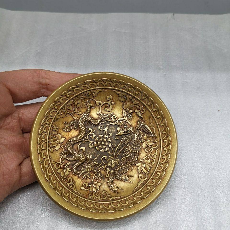 名城1元起拍#纯铜器双龙戏珠盘碟子家居装饰品黄铜古玩古董小摆件热门设计联盟服务商