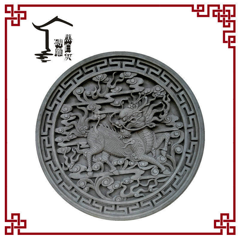 黑白灰砖雕 砖雕浮雕古建装饰装修仿古砖雕浮雕 80mm麒麟GY131热门设计联盟服务商