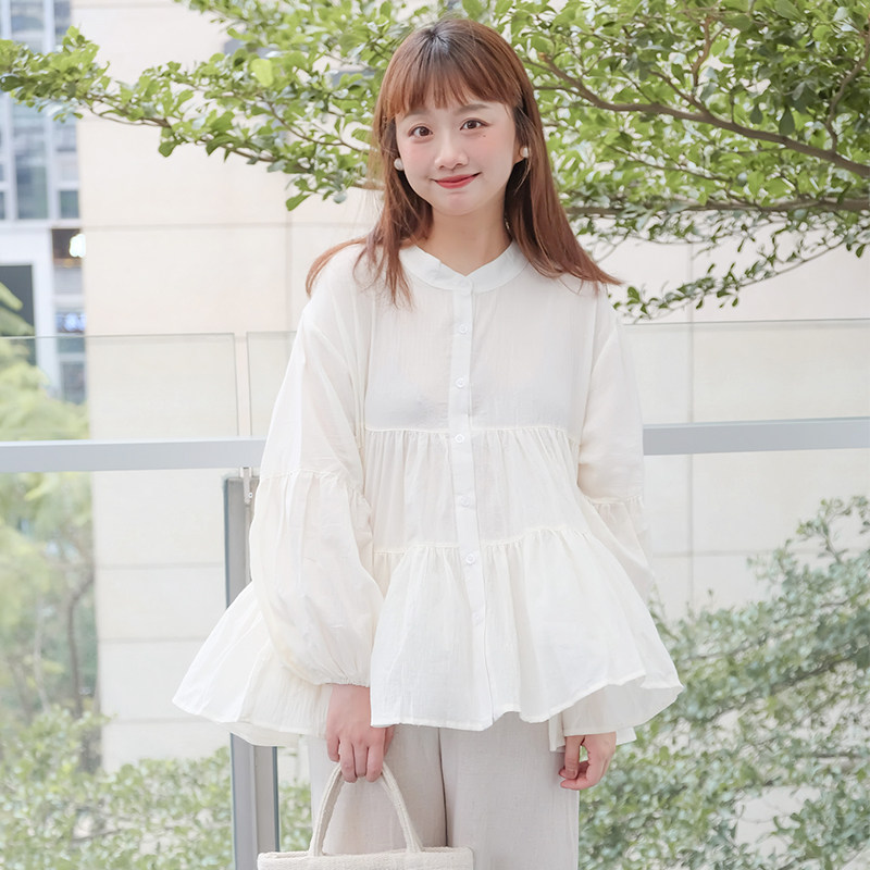 Crisp日系女装 春秋季新款长袖衬衫女设计感小众仙气灯笼袖上衣热门设计联盟服务商