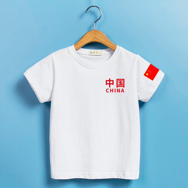 印有中国国旗标志字样男女童短袖t恤 六一儿童夏白色纯棉学生童装热门设计联盟服务商