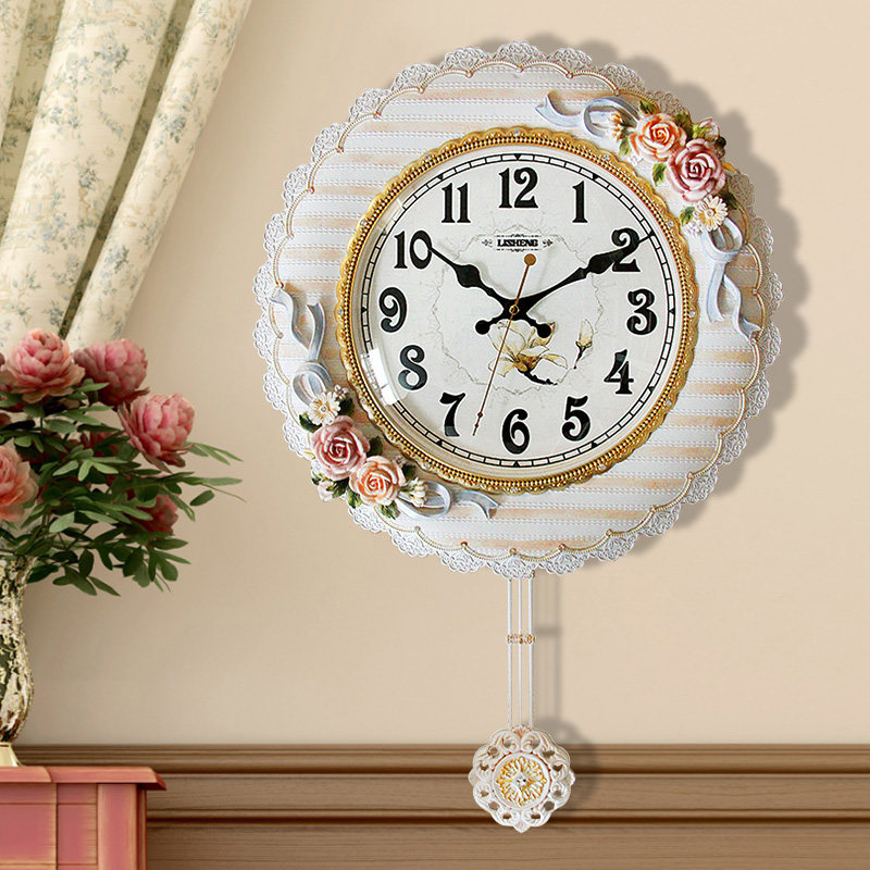 简约圆形家用装饰挂钟北欧艺术现代钟表墙面壁钟欧式复古田园时钟热门设计联盟服务商