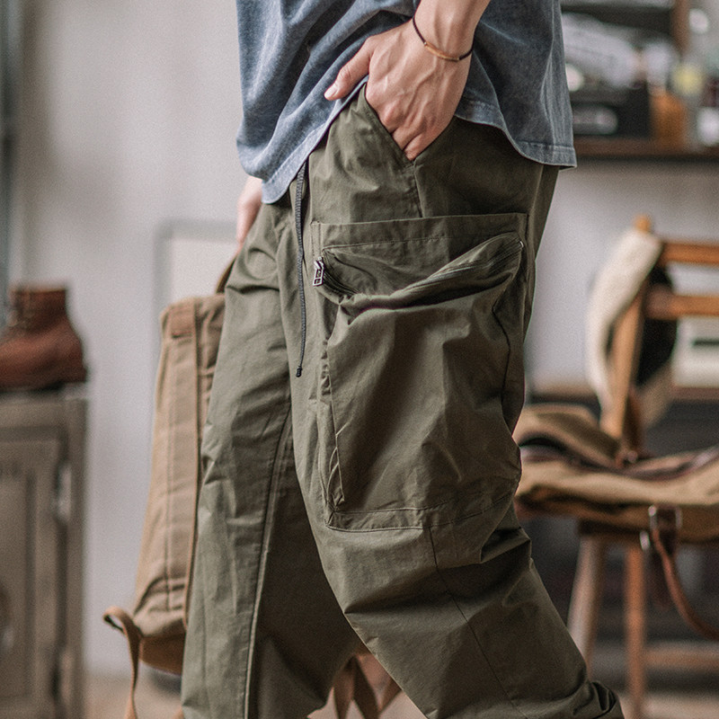 春夏军事风休闲工装裤男口袋束脚美式复古日山系绿咔叽户外潮松紧热门设计联盟服务商