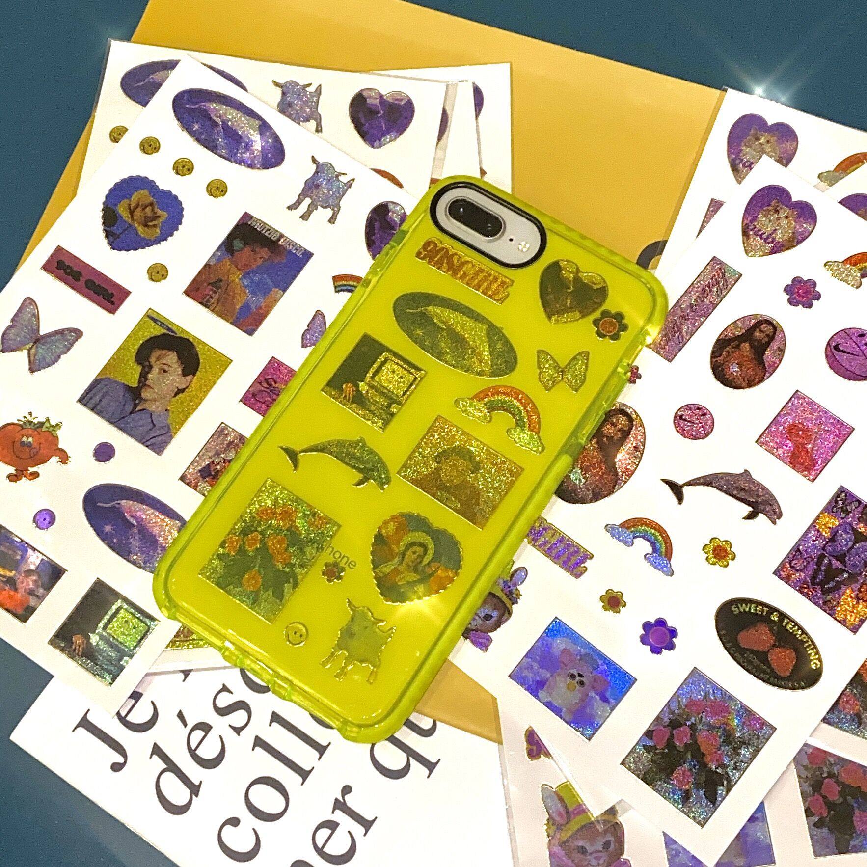 90s GIRL 复古烫金镭射贴纸ins 蝴蝶海豚小李子拍立得手机装饰贴热门设计联盟服务商